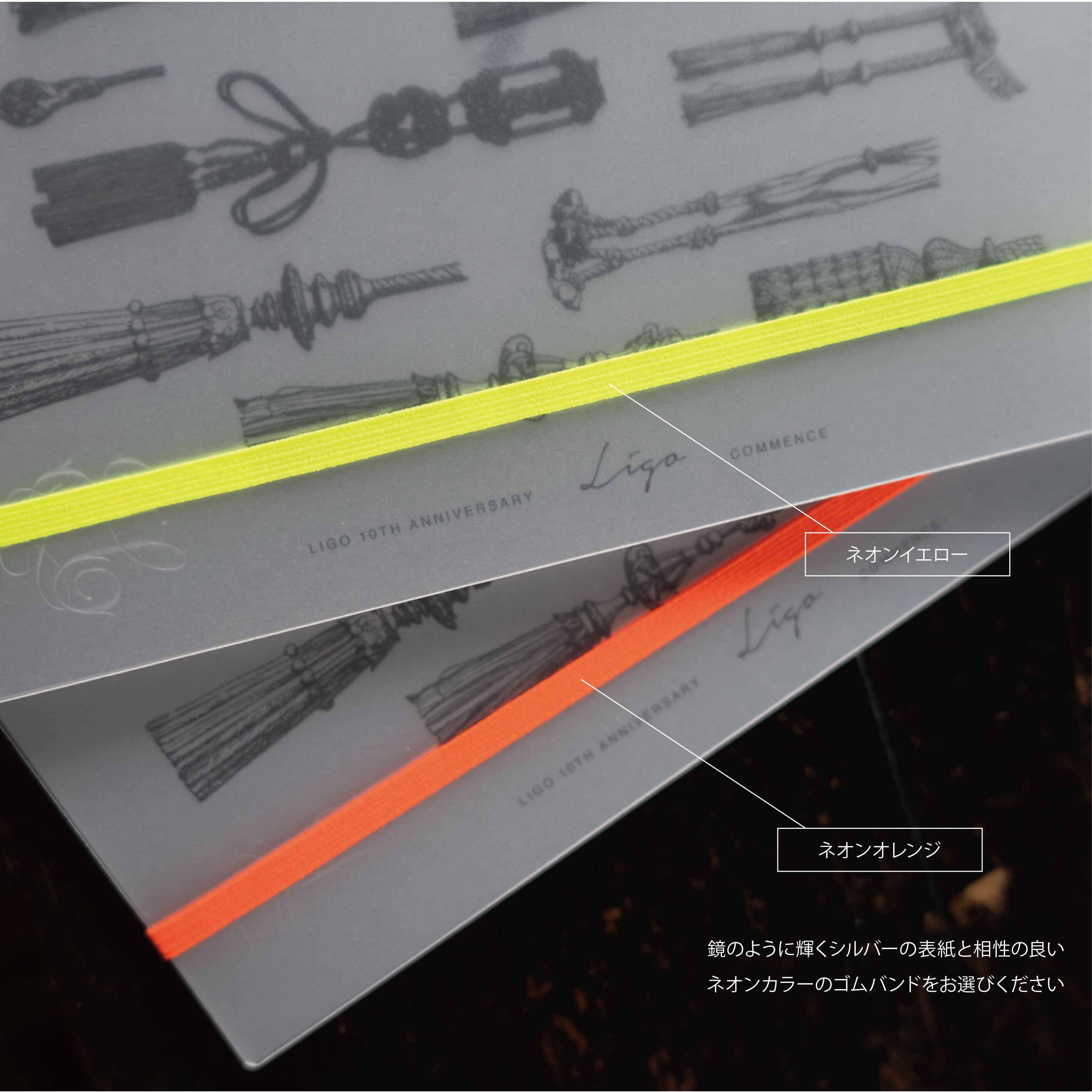 お好きな表紙やゴムバンドの色、中紙、裏表紙を選び