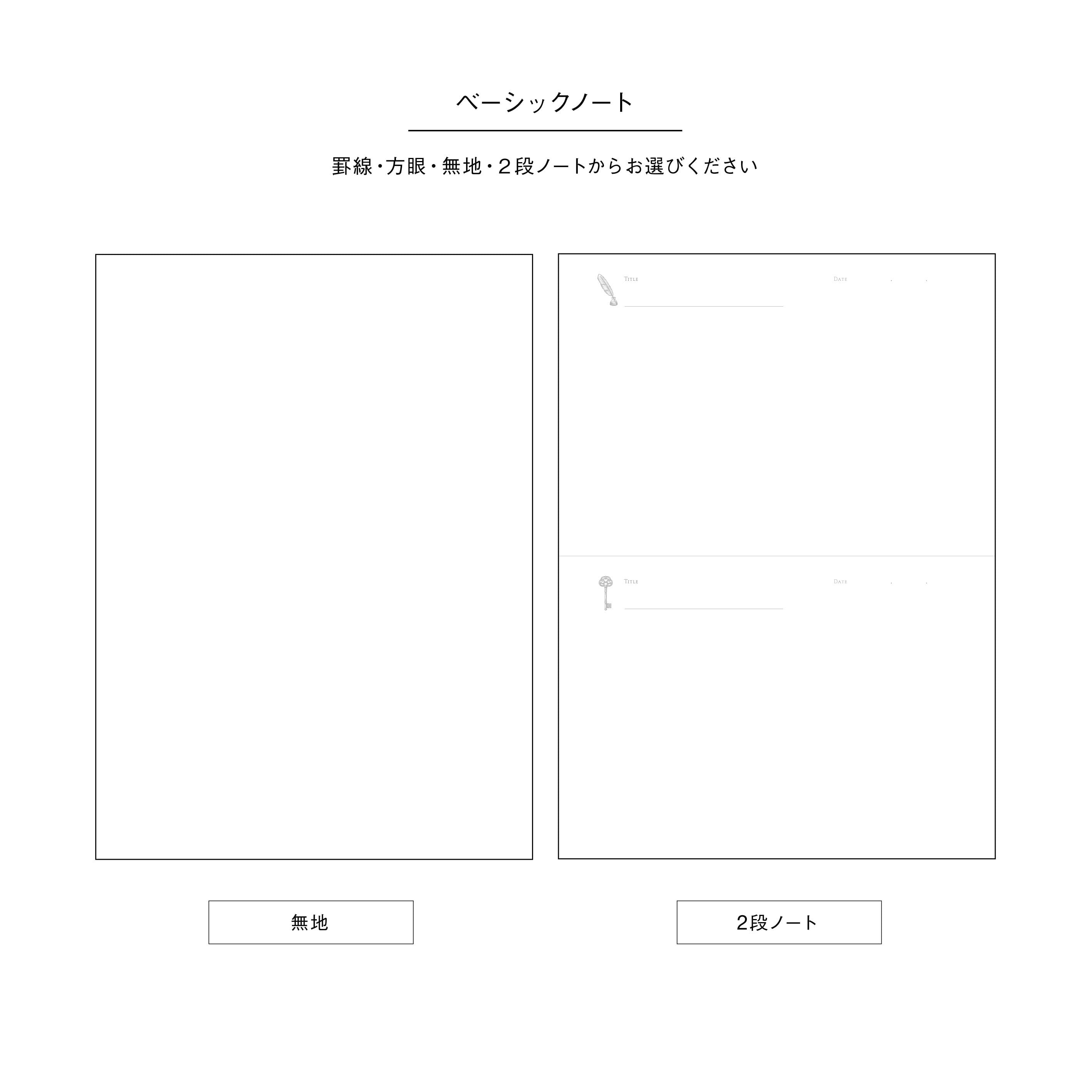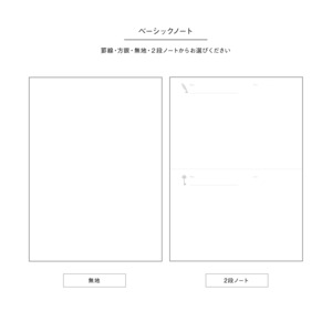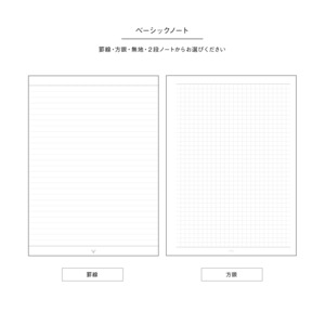 ②中紙:罫線・方眼・無地・2段ノートからお選びください。