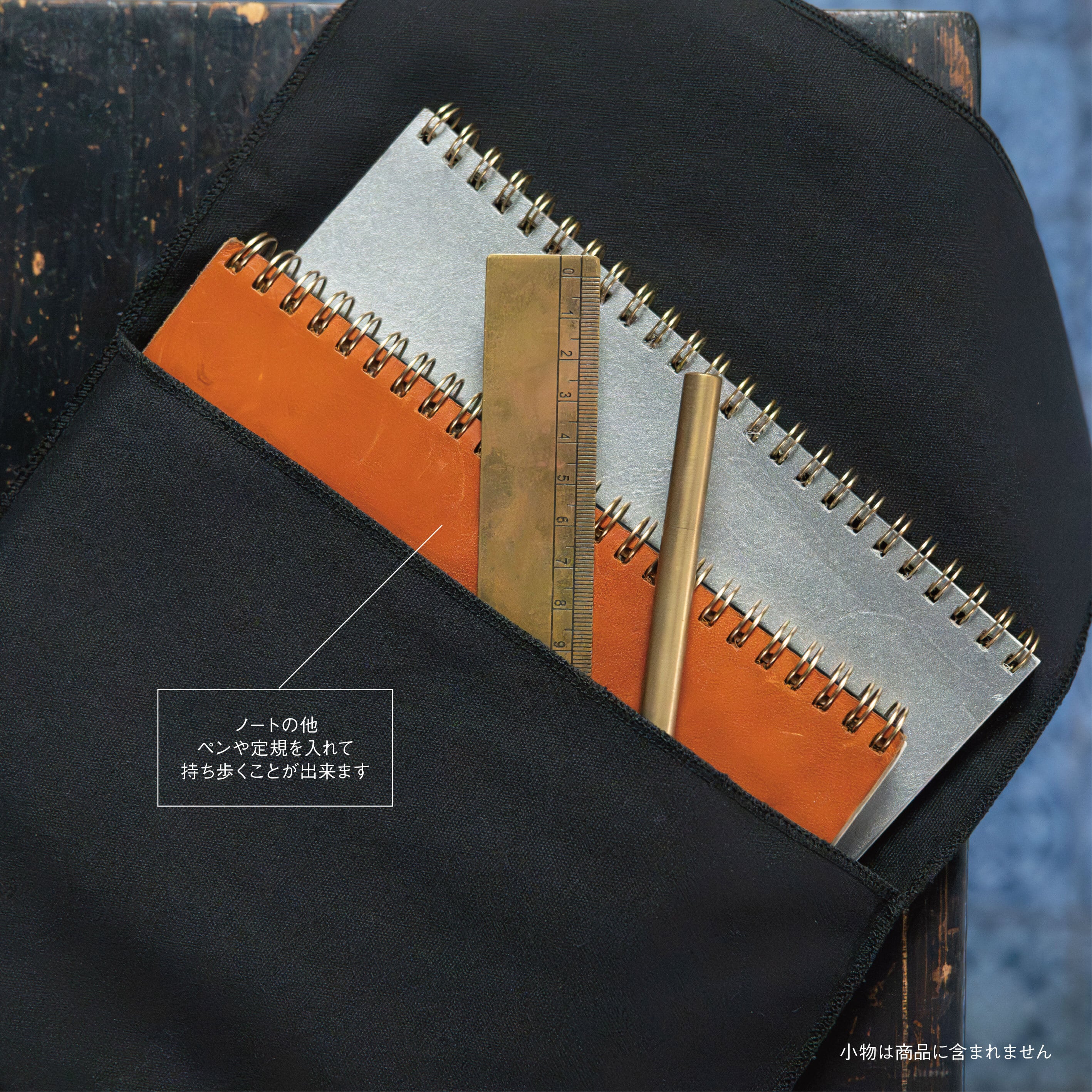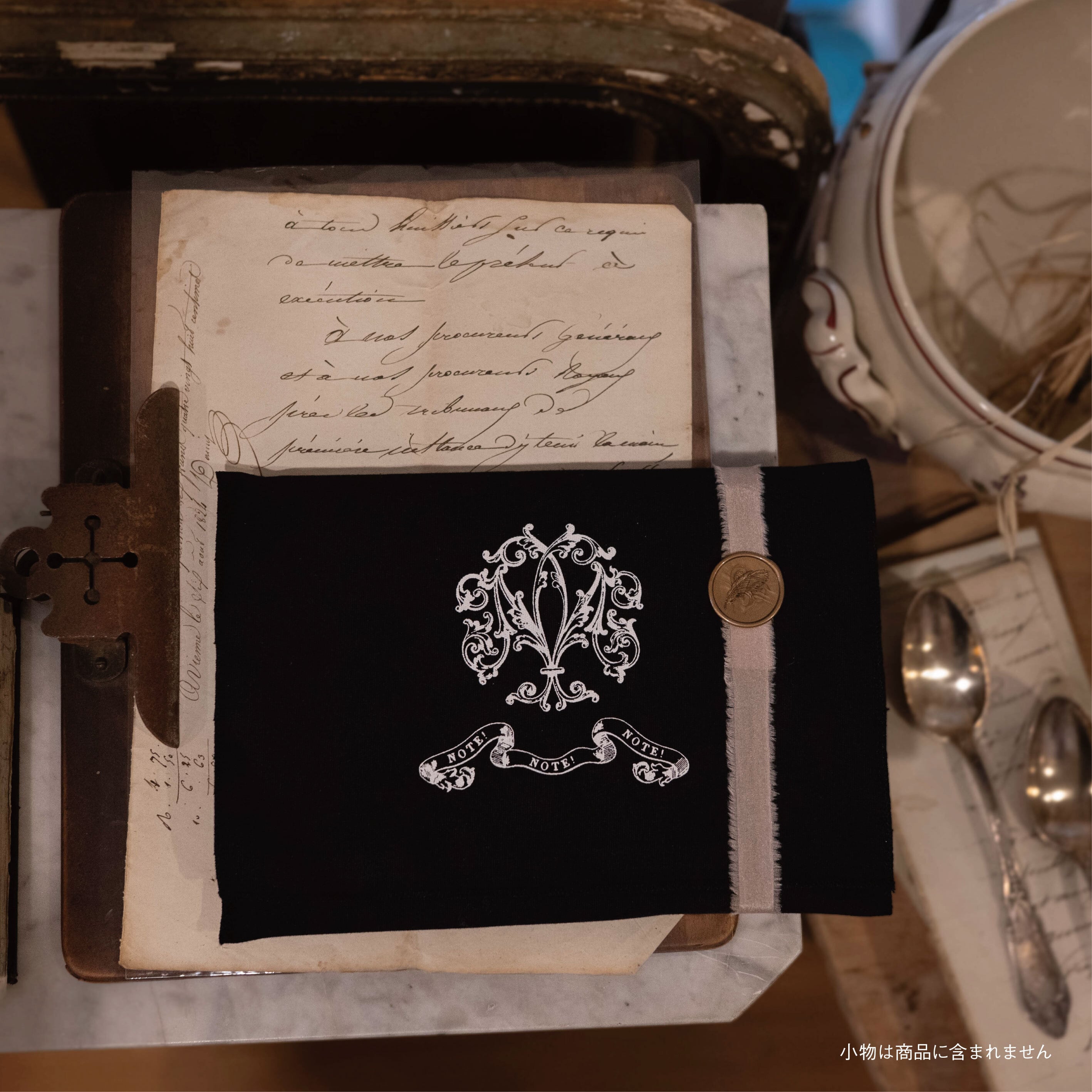 ノートを包み、持ち歩くための布製スリーブ。 ペンや定規など、日々の道具も一緒に収められます。 デザインは、Nのモノグラムをあしらったクラシックスタイル。 贈り物としてはもちろん、 ノートと過ごす時間を、より美しく整えるひとしなです。 リボンとシーリングスタンプでお包みいたします。 サイズ:約横250mm×縦170mm 素材:やや薄手のコットン