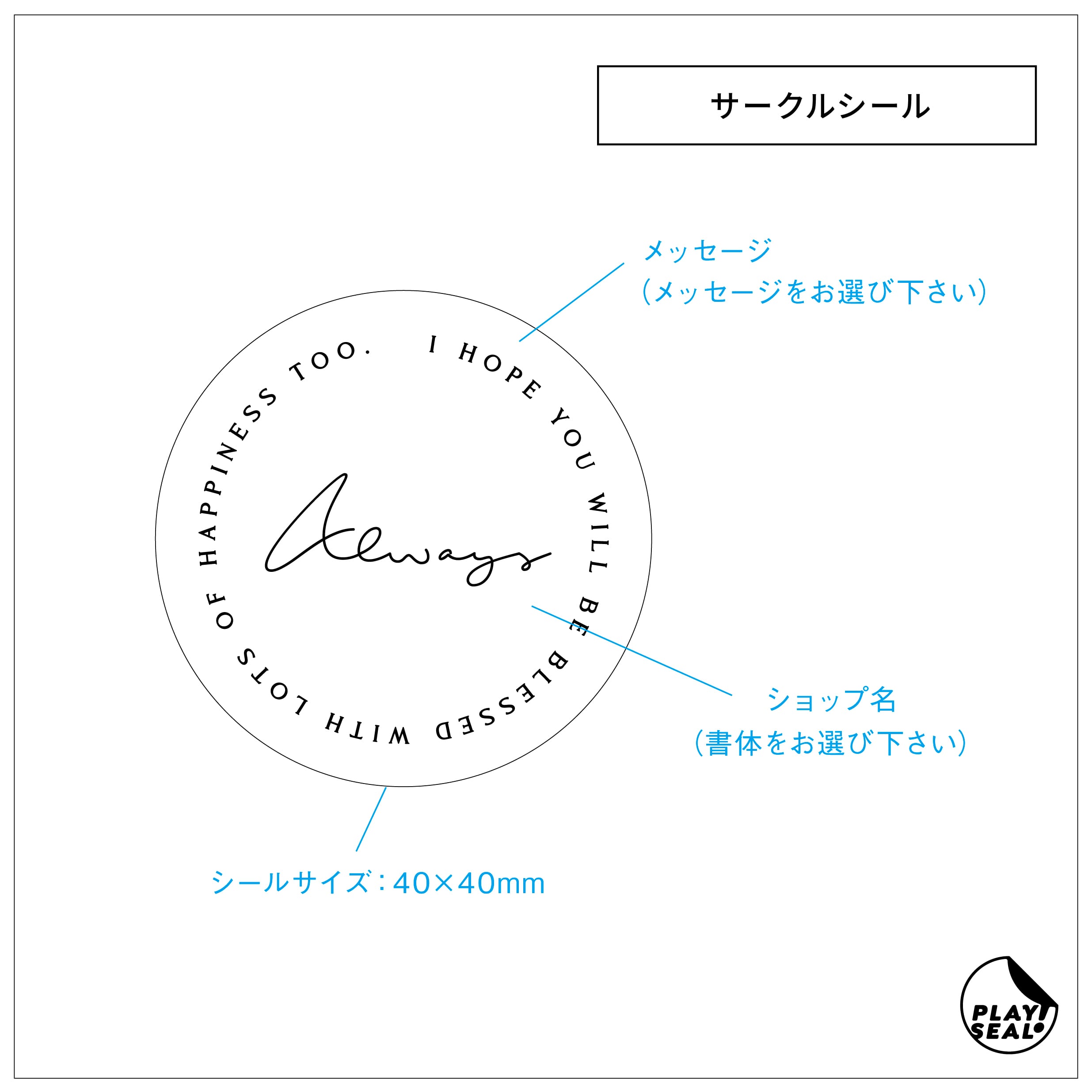 シールサイズ:直径40mm 丸型 丸シール枚数:600枚 丸シール単価:5.5円 仕様:A4シート 25枚 紙質:上質紙シール 背景の色は6色からお選び頂けます 小ロット・短納期対応 飲食店用のお弁当・お持ち帰り用袋・カップ ハンドメイドの方のラッピングにも ※耐水・防滴機能はありません。 ──────────── ■ロゴシール ご自分のショップのロゴを印刷していくシールです LINEに登録後 下記内容を送信下さい LINE登録 ☞ https://lin.ee/2aaYs6E ①ショップ名 ②ショップロゴのデータ ──────────── ■サークルシール ■イニシャルシール ショップロゴの無い方や ご自分のシールで楽しみたい方向けのデザインです 選んで頂いたフォントでショップ名をお入れし、その上や周りにメッセージを印刷致します LINEに登録後 下記内容を送信下さい LINE登録 ☞ https://lin.ee/2aaYs6E ①ショップ名 ②ショップ名のフォント ③ショップ名上のメッセージ ──────────── □デザイン修正について:修正回数2回まで料金内に含む。3回目以降、1回につき+1,100円 □領収書ご希望の方は備考欄へご記載くださいませ。 後日、LINEよりPDFデータにてお送り致します。